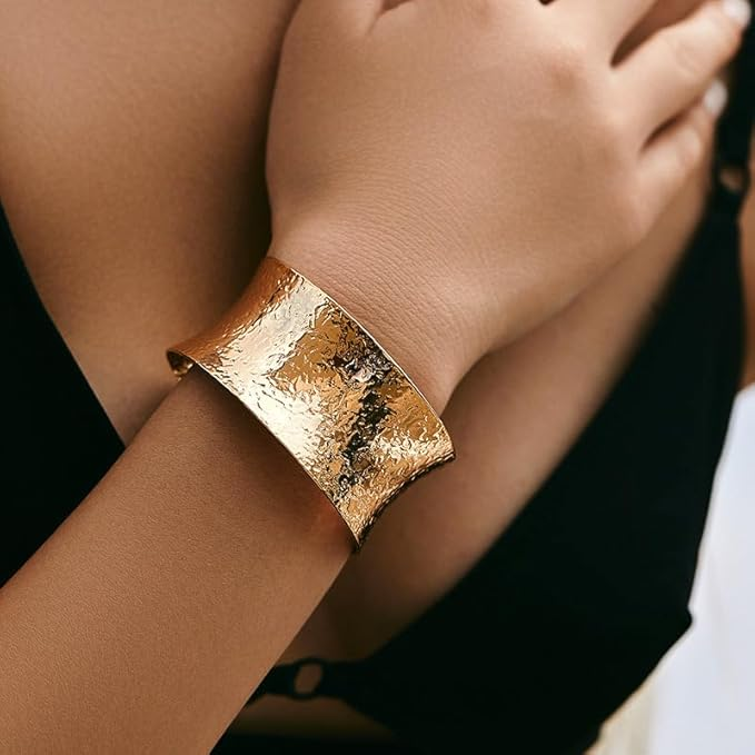 اساور عريضة مطلية بالذهب للنساء، سوار انيق مناسب كهدية لمهرجانات الصيف، مقاس M, نحاس، بدون احجار كريمة